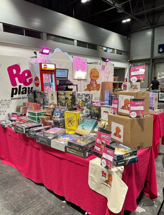 Replay no se lo quiso perder y nuestro estand era un mini Replay donde pudimos jugar a juegos, comprar juegos de outlet, tomar café, desayunar y merendar y nos lo pasamos genial, estuvimos con un montón de compañeros, editoriales, amigos y familias, con colas incluidas para visitar nuestro estand como podéis ver en nuestra foto. Una autentica pasada.
